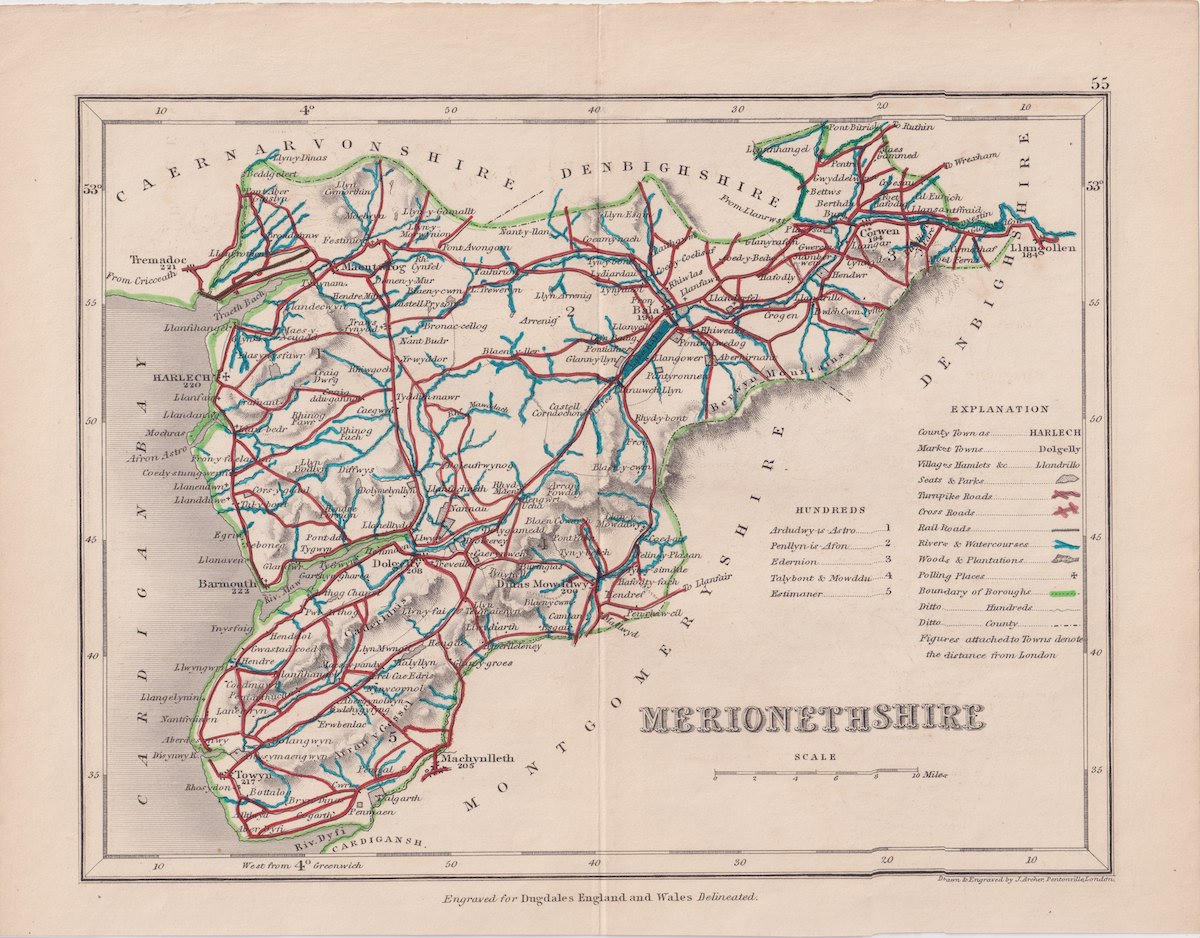 Antique Map, Merionethshire, 1840, engraved for Dugdales England and Wales Delineated, 27 x 21 cm.