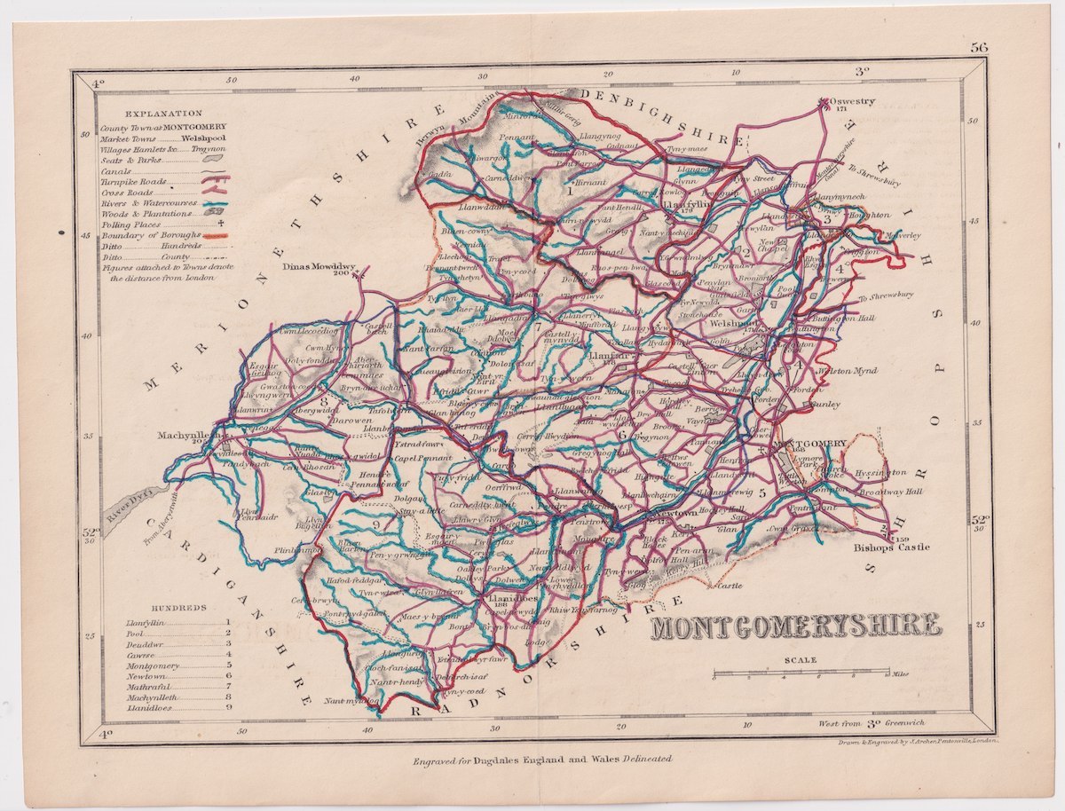 Antique Map, Montgomeryshire, 1840, credit Antiche Curiosità©
