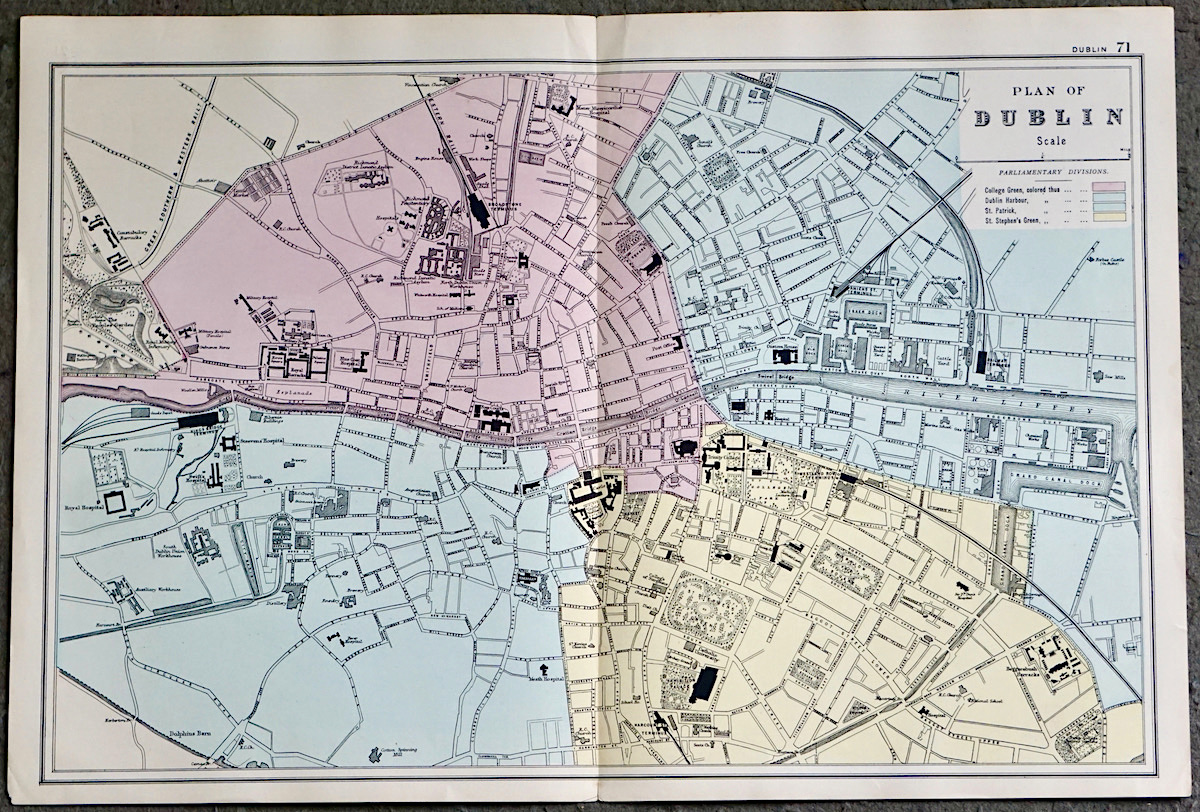 Antique Map, Plan of Dublin, 1891, 51.4 x 35 cm.