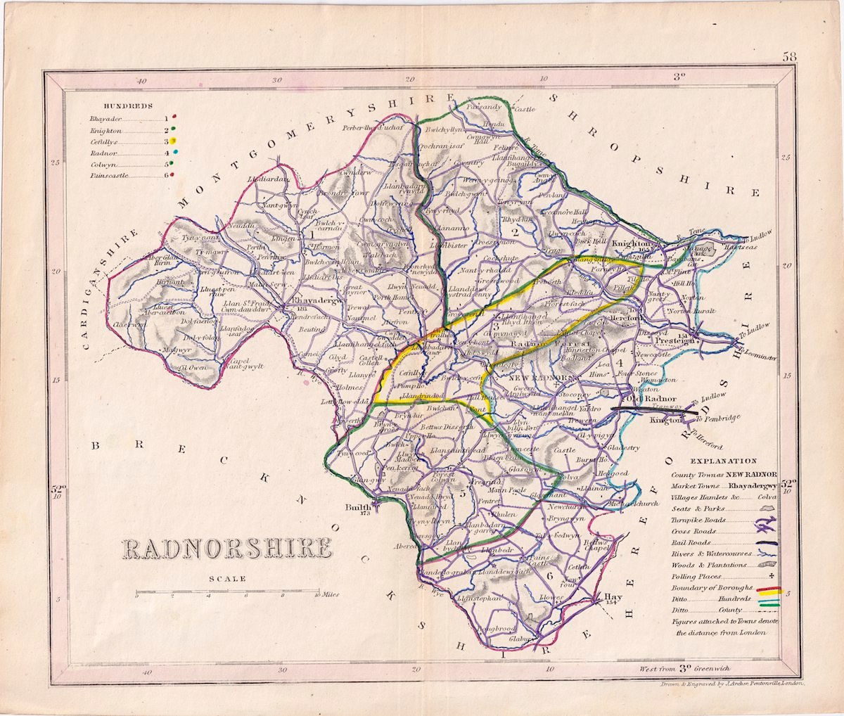 Antique Map, Radnorshire, 1850 ca. 25 x 21,2 cm.