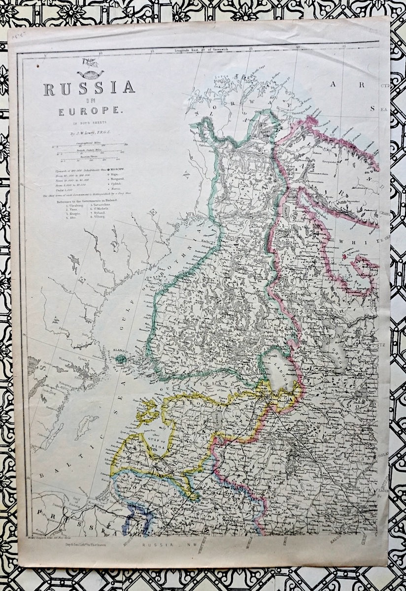 Antique Map, Russia in Europe, 1850 ca. 47,2 x 32,6 cm. By J. W. Lowry.