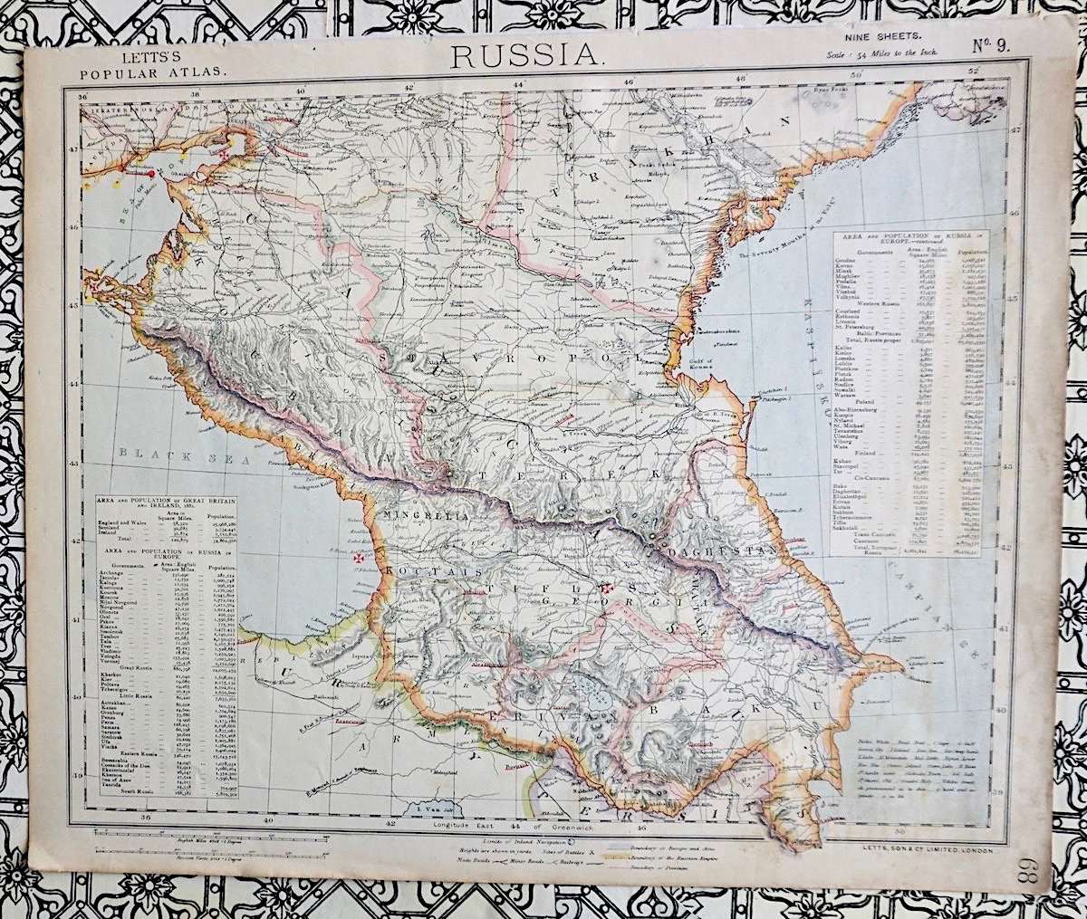Antique Map, Russia, Letts’s Popular Atlas, 1881, 43,2 x 35,5 cm.