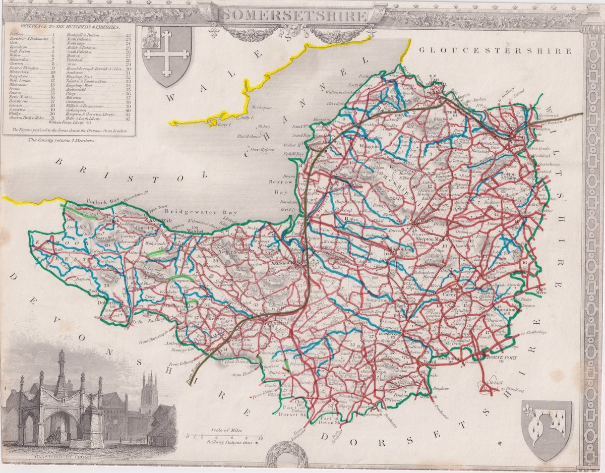 Antique Map, Somertsetshire, by Thomas Moule, 1840, credit Antiche Curiosità©