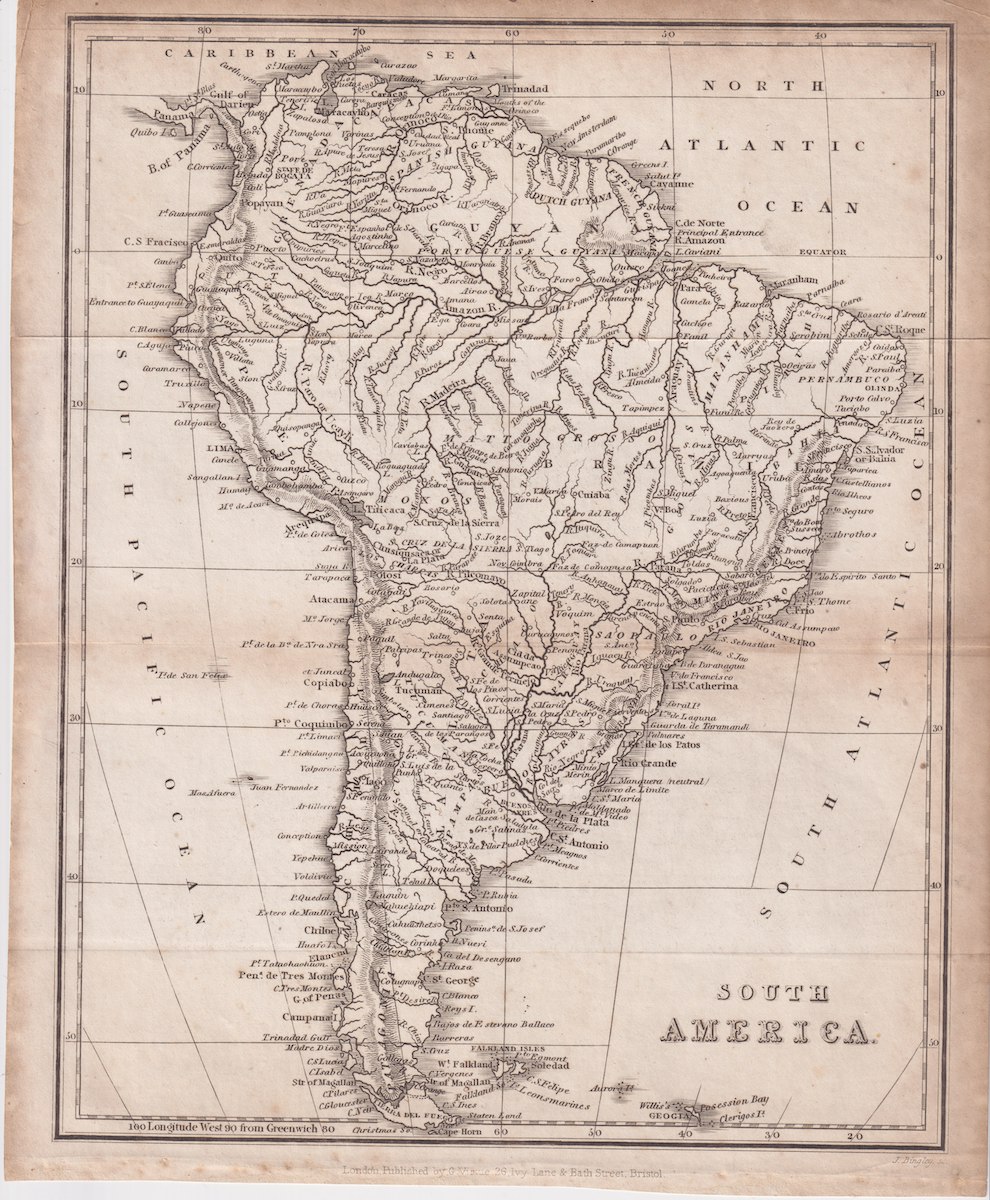 Antique Map, South America, 1826, credit Antiche Curiosità©