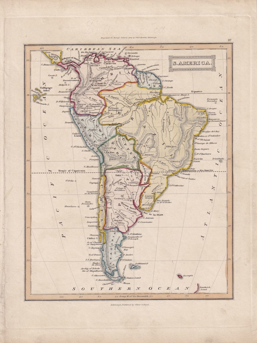 Antique Map, South America, 1845, credit Antiche Curiosità©