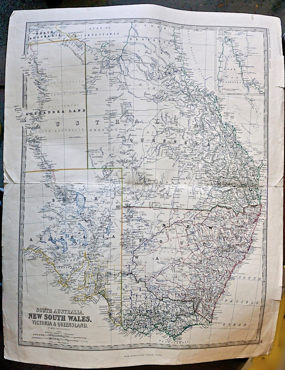 Antique Map, South Australia New South Wales, Victoria & Queensland, 1880, cm. 64 x 50., William Blackwood & Son, Edinburgh & London.