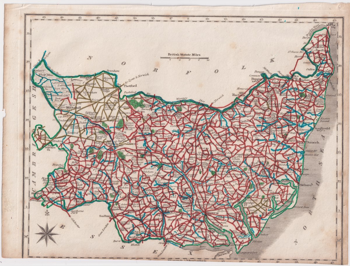 Antique Map, Suffolk, 1820 ca. 27 x 20.5 cm.