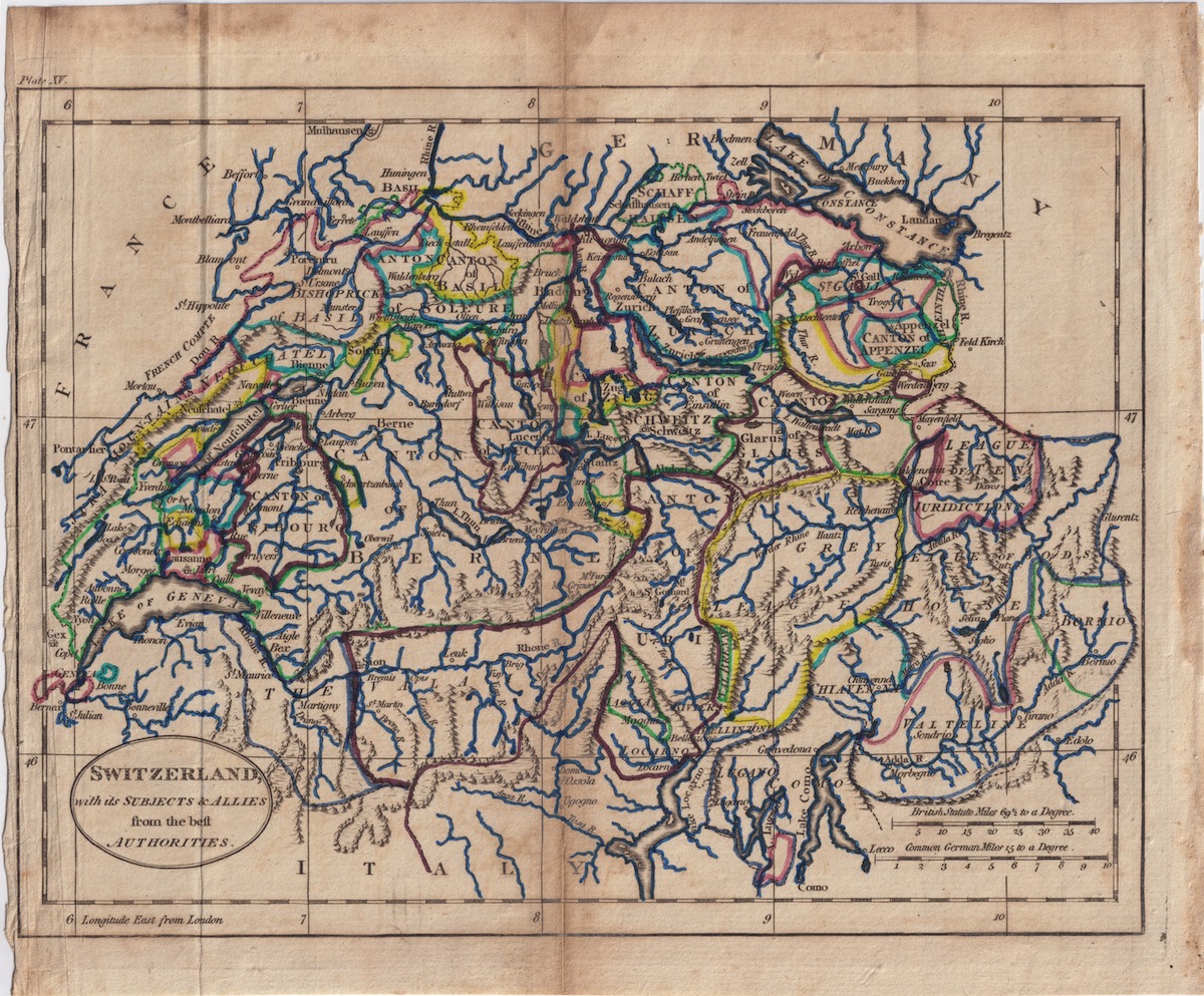 Antique Map, Switzerland, 1807, credit Antiche Curiosità©
