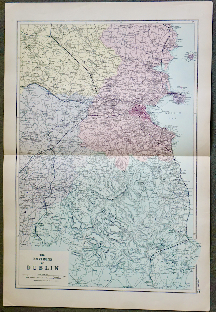 Antique Map, The Environs of Dublin, 1891, 35 x 51.4 cm.