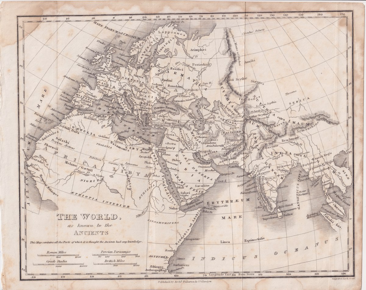Antique Map, The World as Known to the Ancients, 1808, credit Antiche Curiosità©