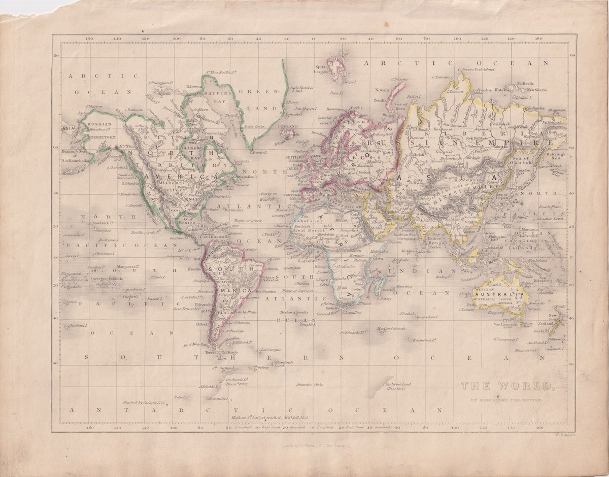 Antique Map, The World on Mercator Projection, 1842, credit Antiche Curiosità©
