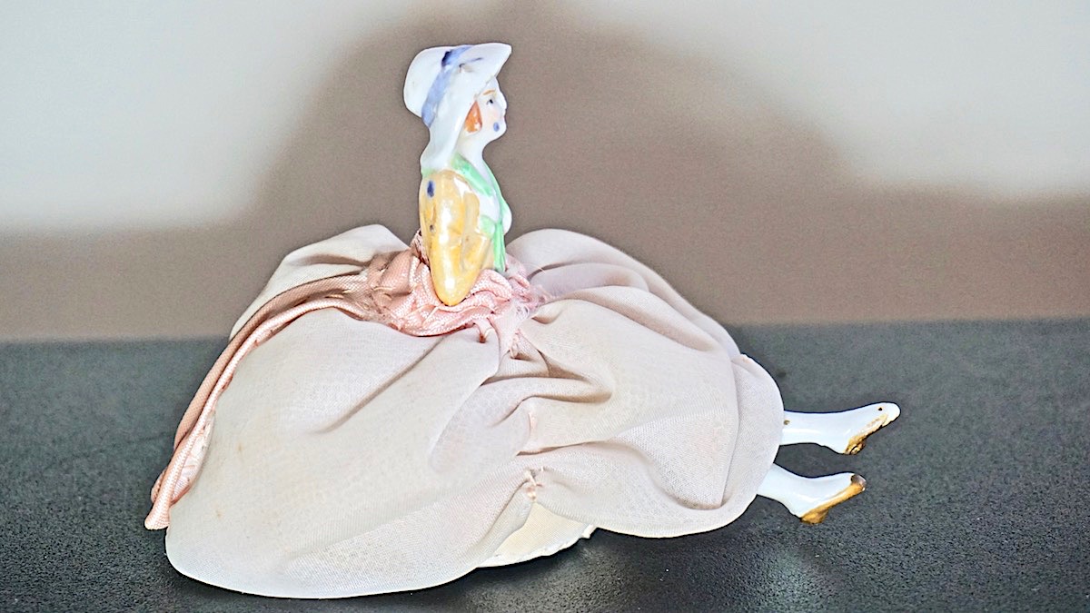 Antique Original Art Deco Porcelain Bisque Half Doll Pin Cushion Legs, credit Antiche Curiosità©