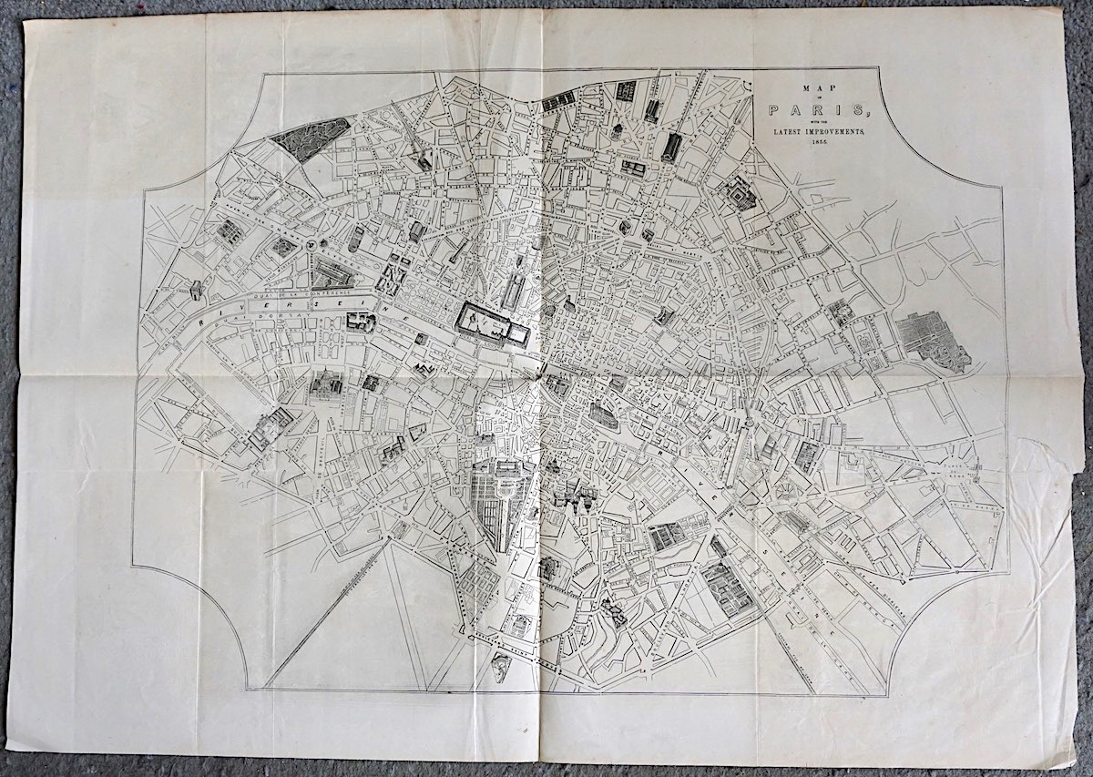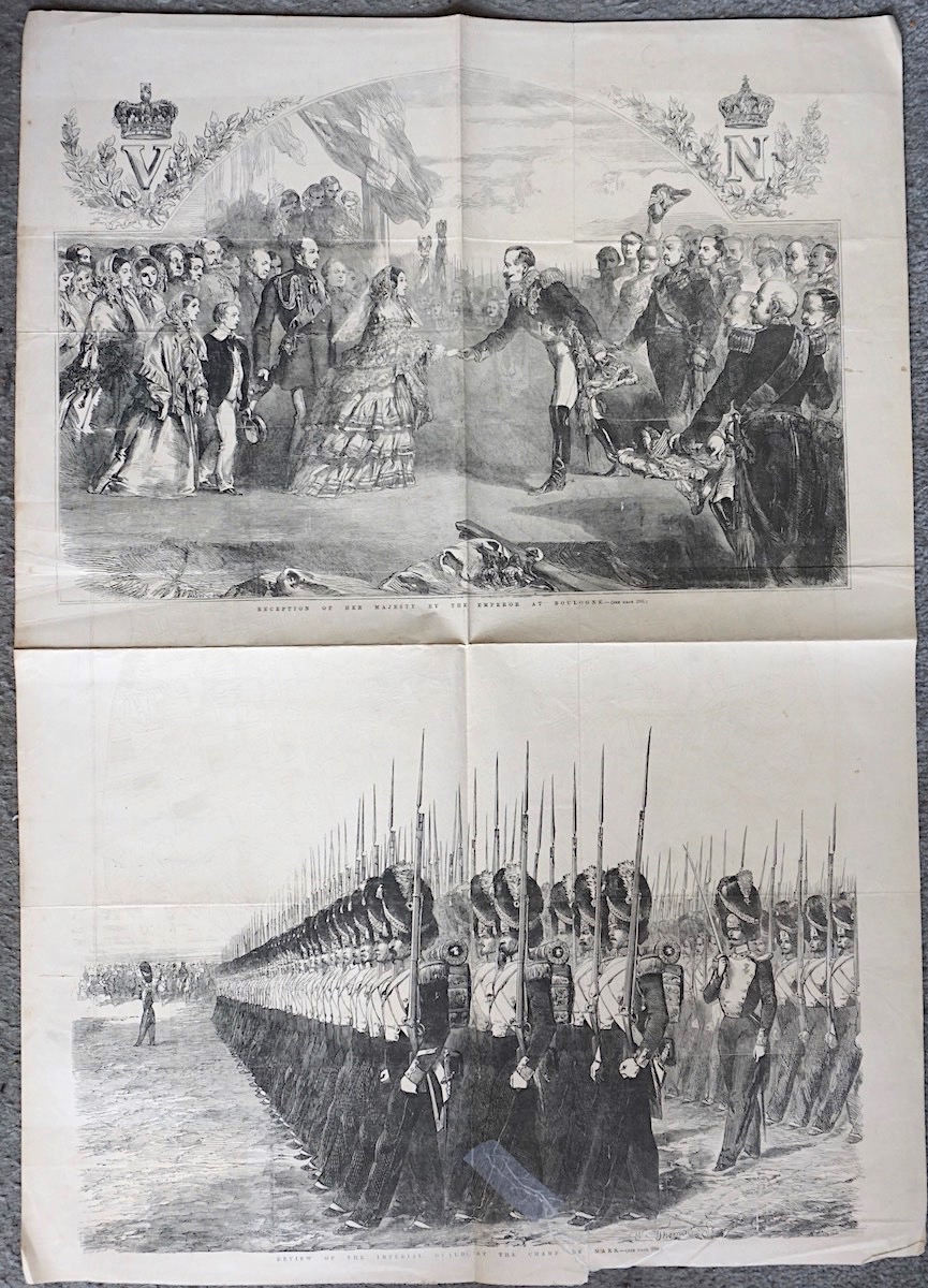 Antique Paris Map; Reception oh her Majesty by the Emperor at Boulogne, 1855, printed on both sides, 57,5 x 82 cm. Foldable.