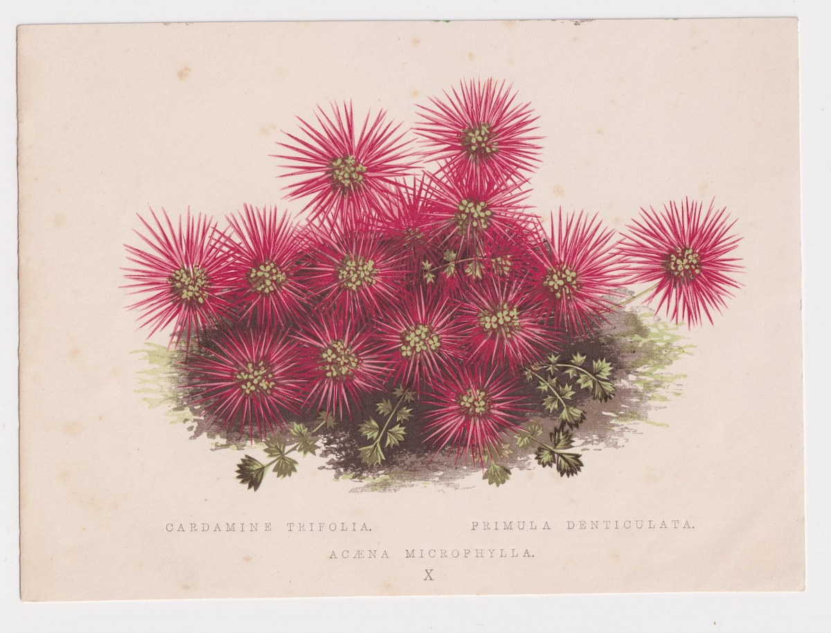 Antique Print, Acaena Microphylia, 1897, credit Antiche Curiosità©