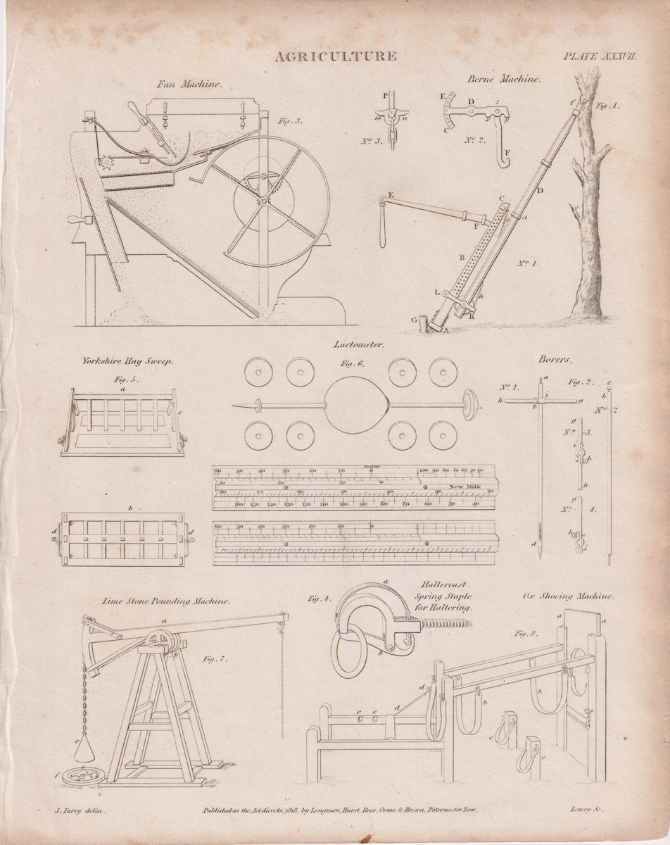 Antique Print, Agriculture, 1818, credit Antiche Curiosità©