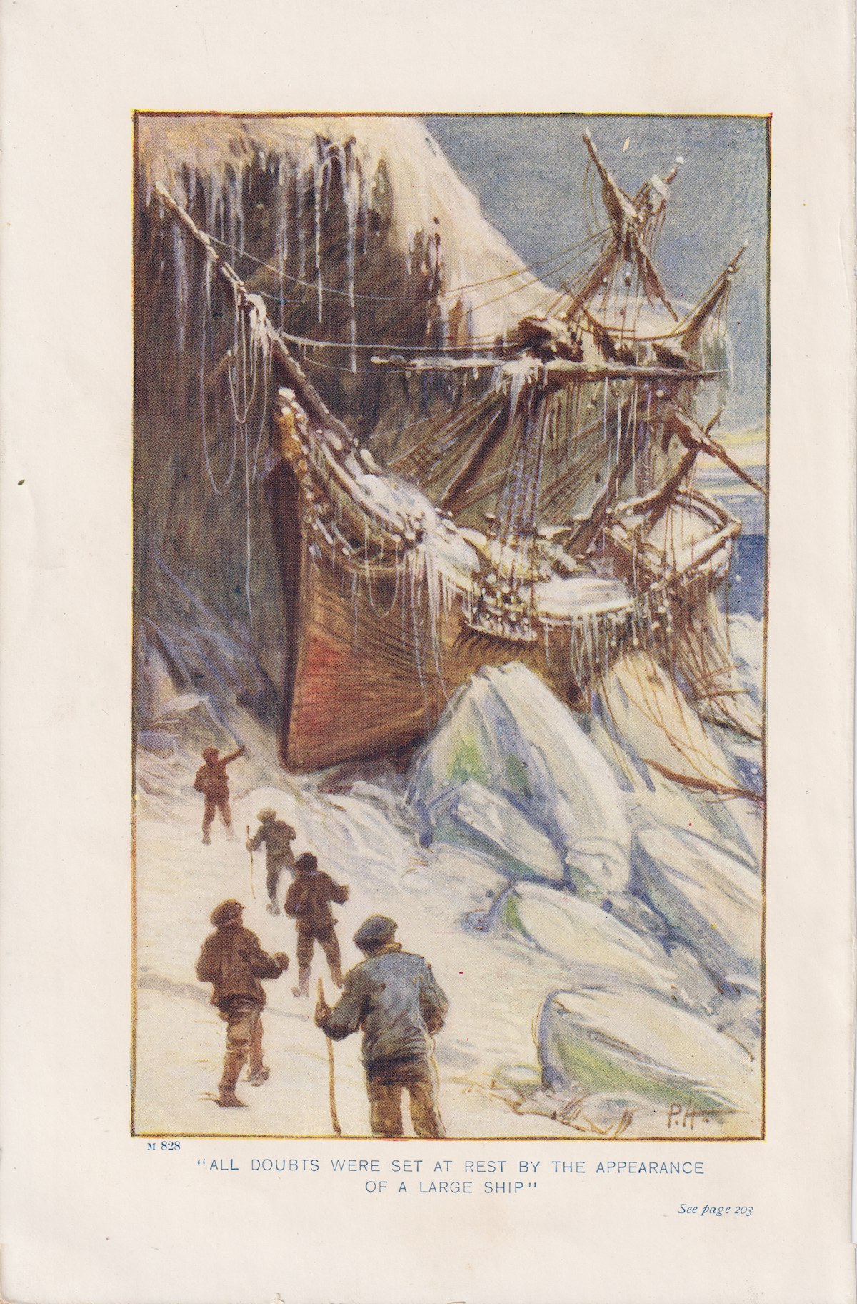 Antique Print, All Doubts were set at rest by Appearance of a large ship, 1890, 11.8 x 18 cm.