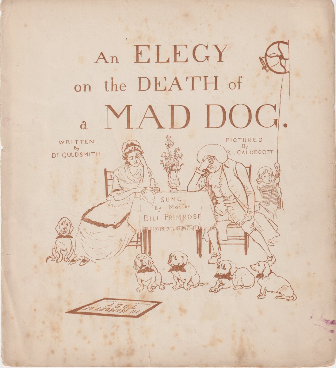 Antique Print, An Elegy on the Death of a Man Dog, 1890, 20.5 x 23 cm.