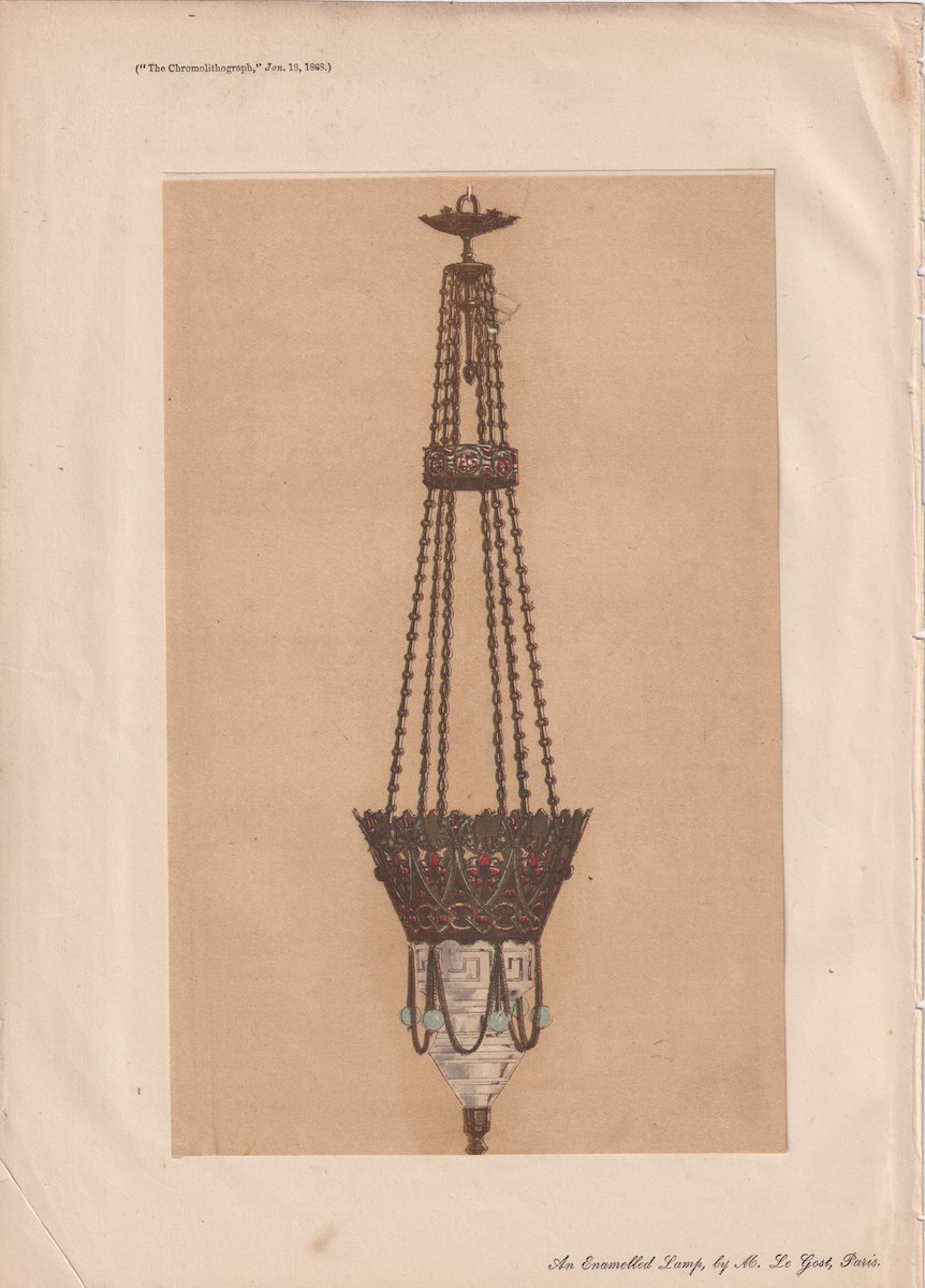 Antique Print, An enamelled Lamp, by M. Le Gost, Paris, 1868, 28.5 x 20.3 cm.