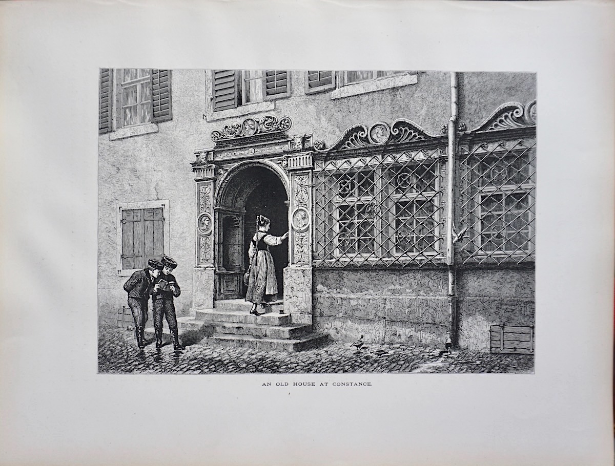 Antique Print, An Old House at Constance, 1870, 32 x 24,2 cm.