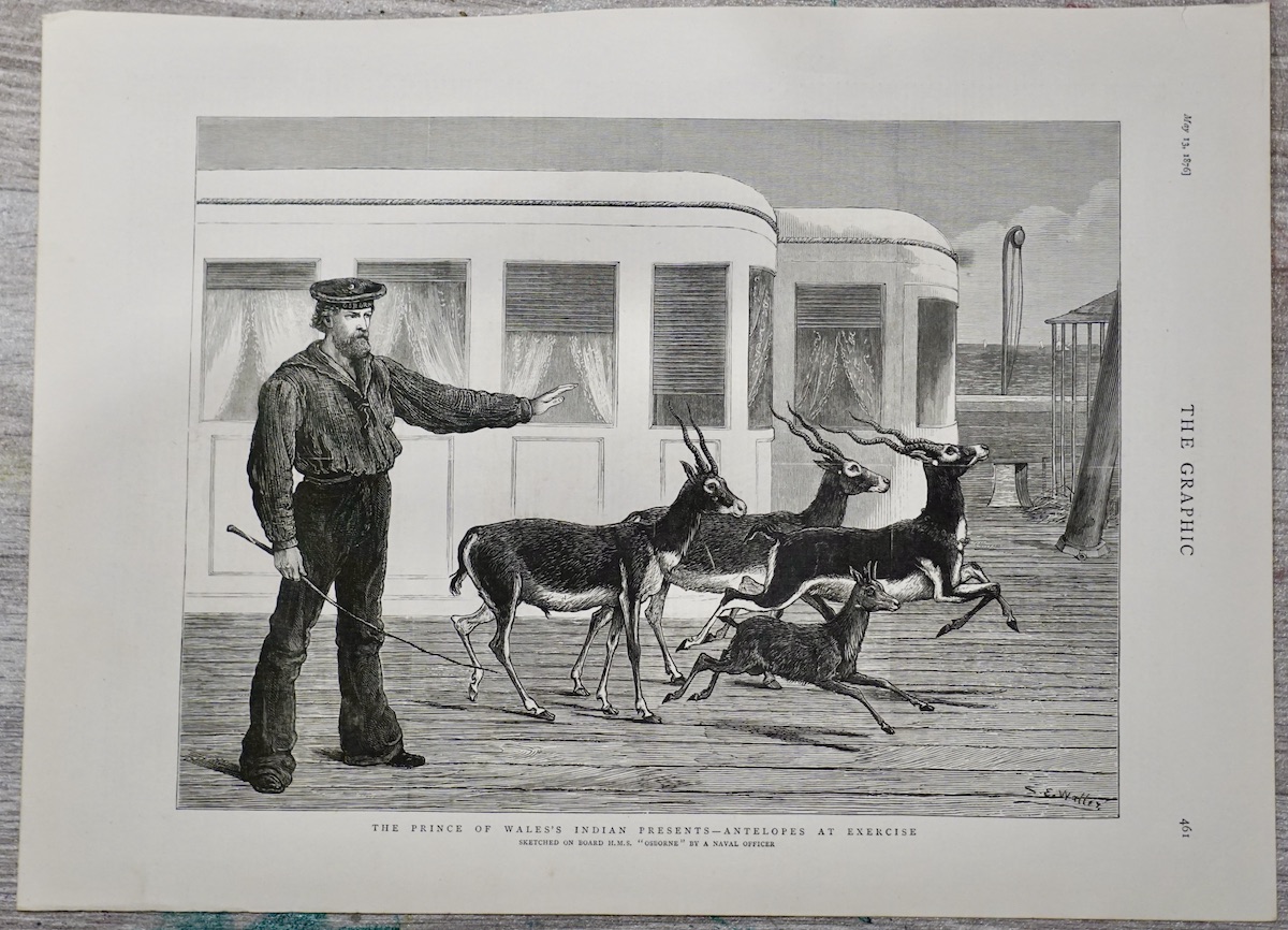 Antique Print, Antelopes at exercise, 1876, 40 x 29.5 cm.