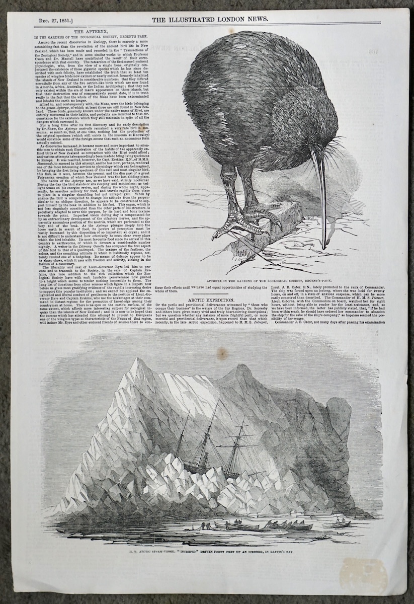 Antique Print, Apteryx; Arctic, 1851, 27.3 x 39.9 cm.