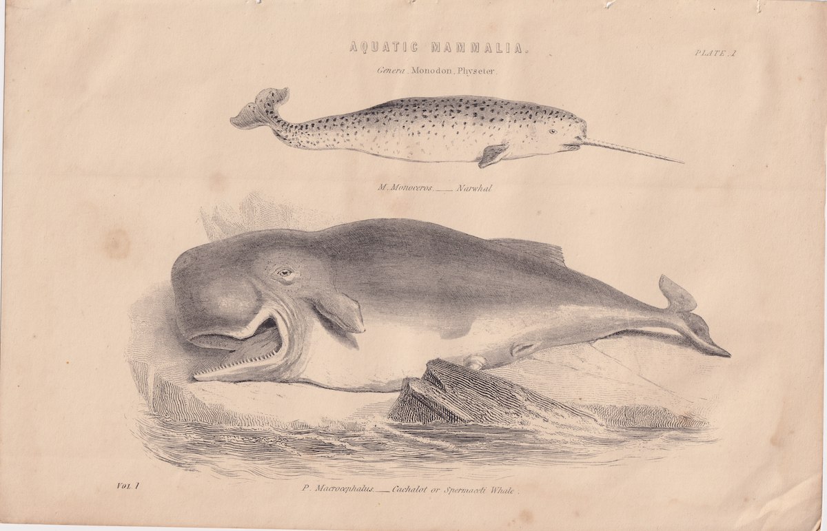 Antique Print, Aquatic Mammalia, 1870, credit Antiche Curiosità©