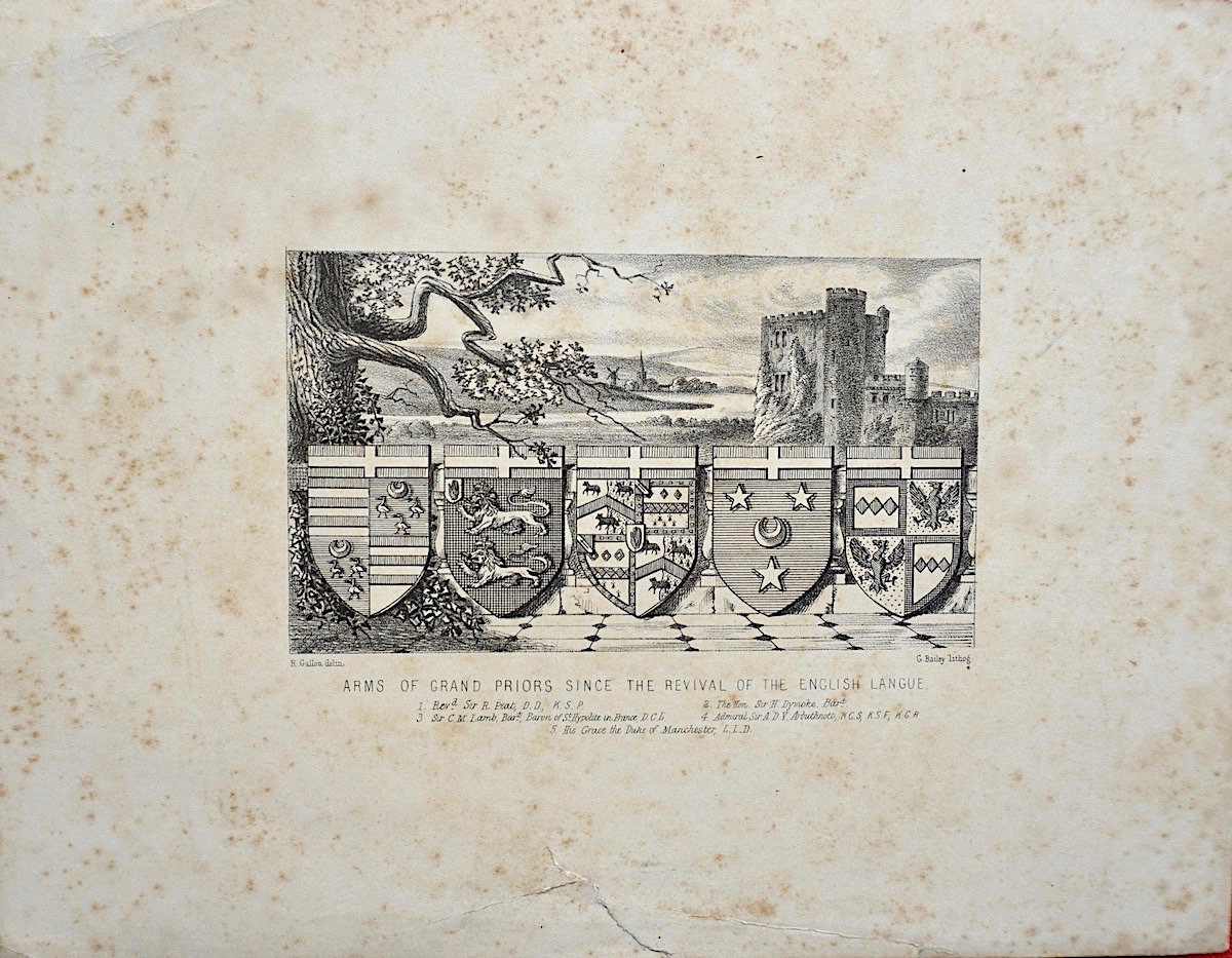 Antique Print, Arms of Grand Priors since the Revival of the English Langue, G. Bailey, 1830, 25,7 x 20 cm.