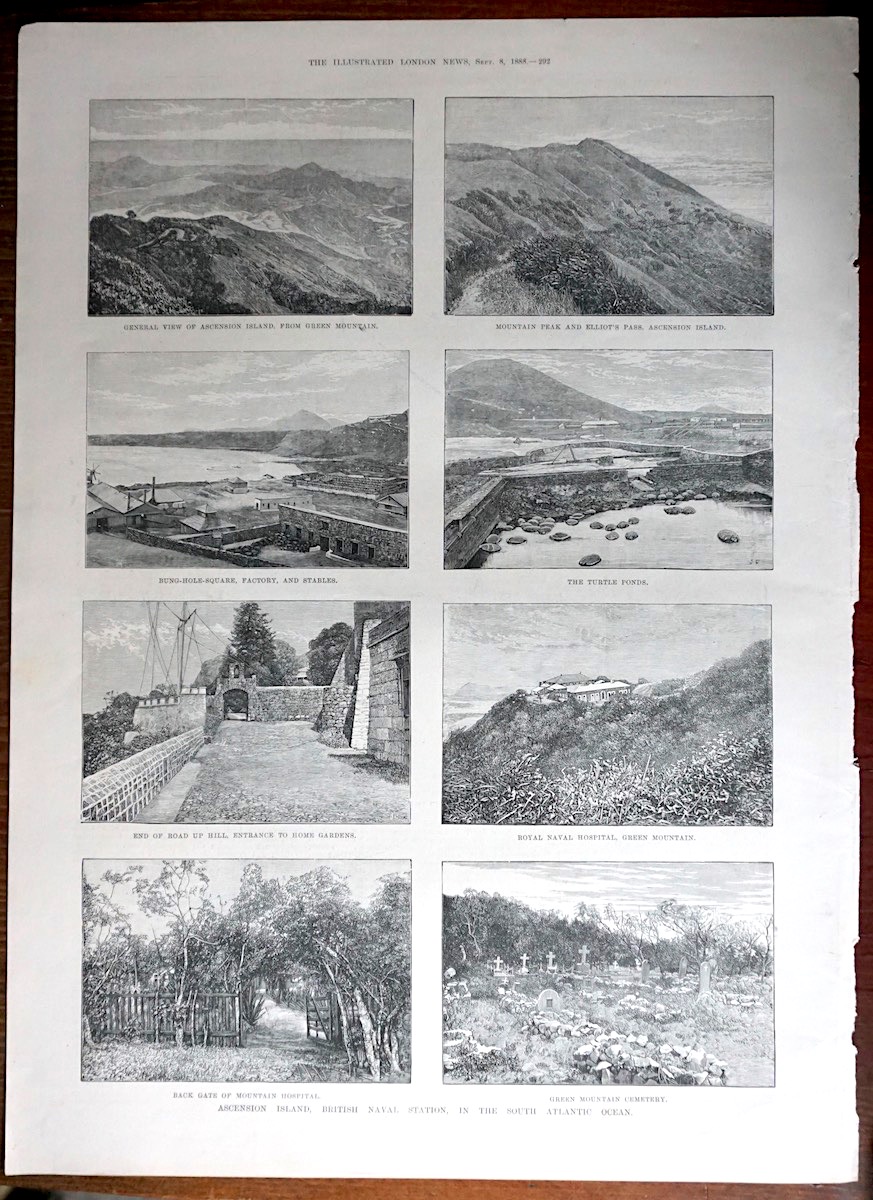 Antique Print, Ascension Island, 1888, 40 x 28 cm. From the Illustrated London News. Printed on both sides.