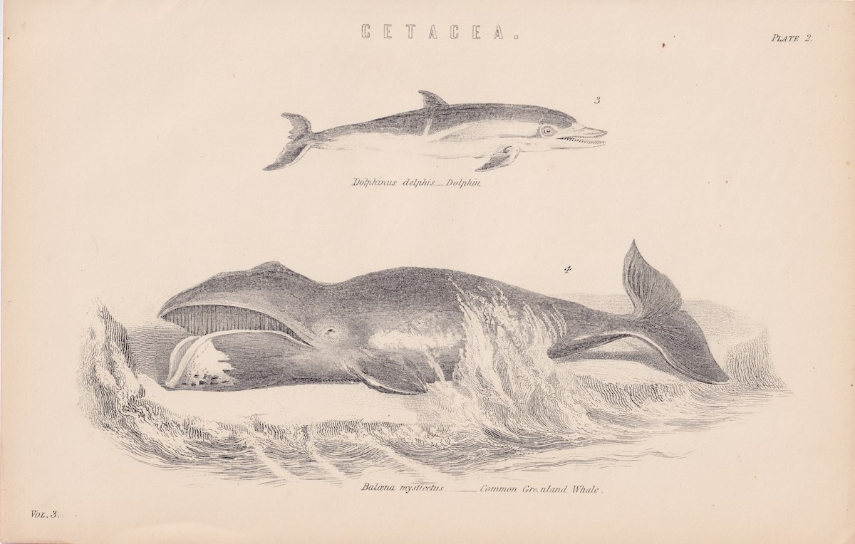 Antique Print, Balaena Mysticetus, 1870, credit Antiche Curiosità©