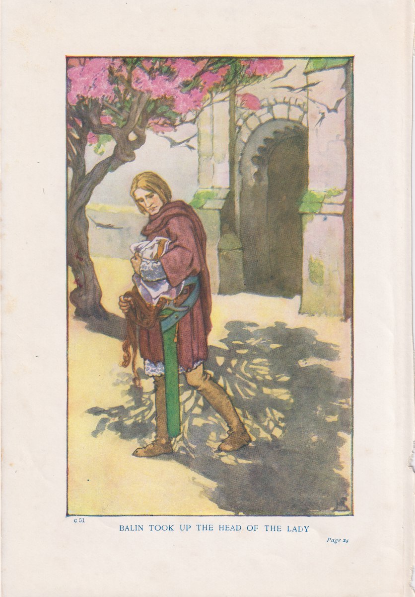 Antique Print, Balin Took up the Head of the Lady, 1890, credit Antiche Curiosità©