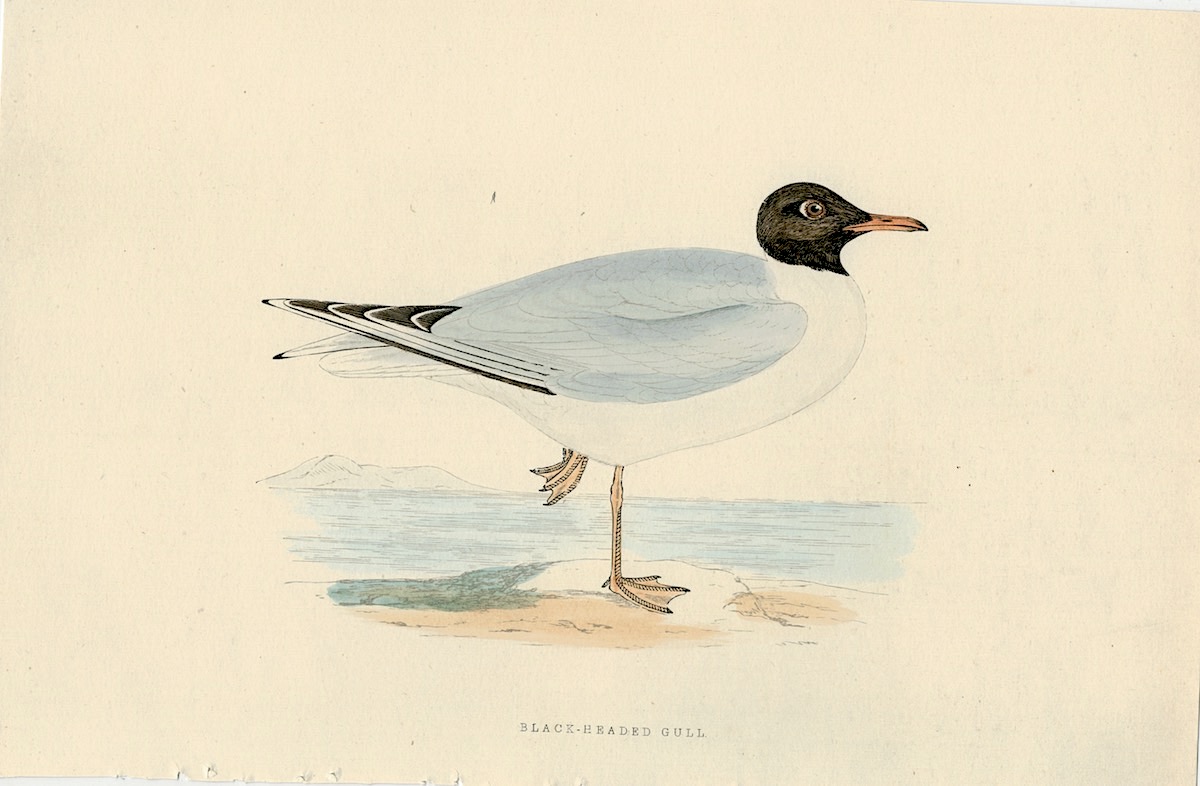 Antique Print, Black-Headed Gull, 1850, credit Antiche Curiosità©