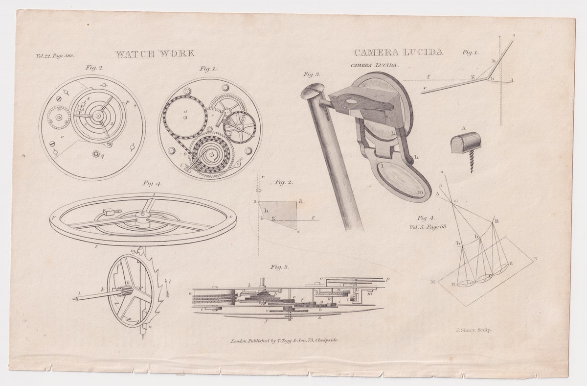 Antique Print, Camera lucida, Watch Work, 1870 ca. credit Antiche Curiosità©