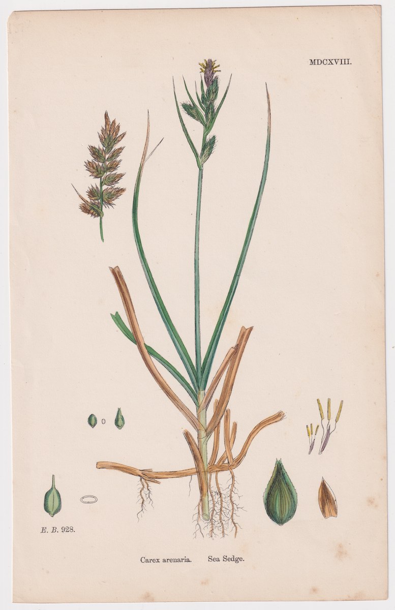 Antique Print, Carex arenaria, 1865, credit Antiche Curiosità©