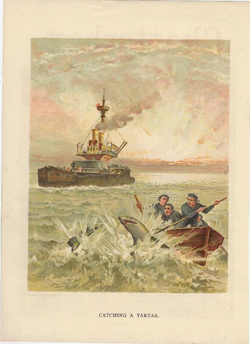 Antique Print, Catching a Tartar, 1890, credit Antiche Curiosità©