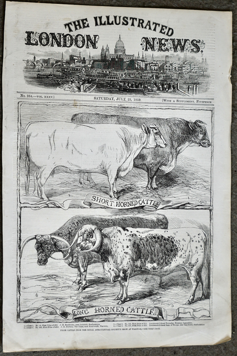 Antique Print, Cattle, 1859, credit Antiche Curiosità©