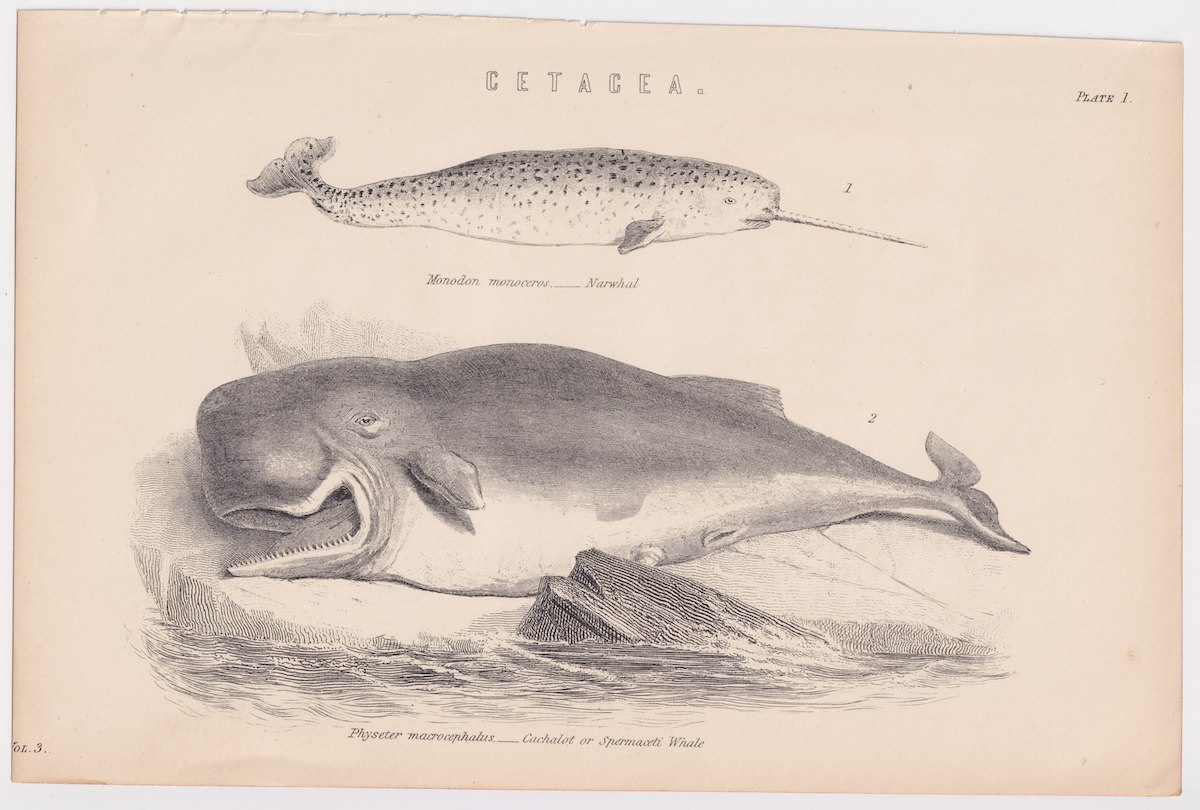 Antique Print, Cetacea, 1870, credit Antiche Curiosità©