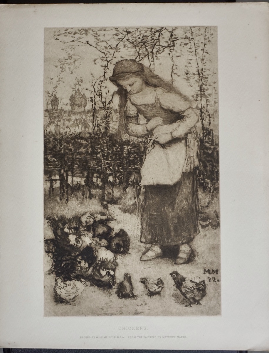 Antique Print, Chickens, Etched by William Hole, 1890, 31,5 x 25,3 cm.