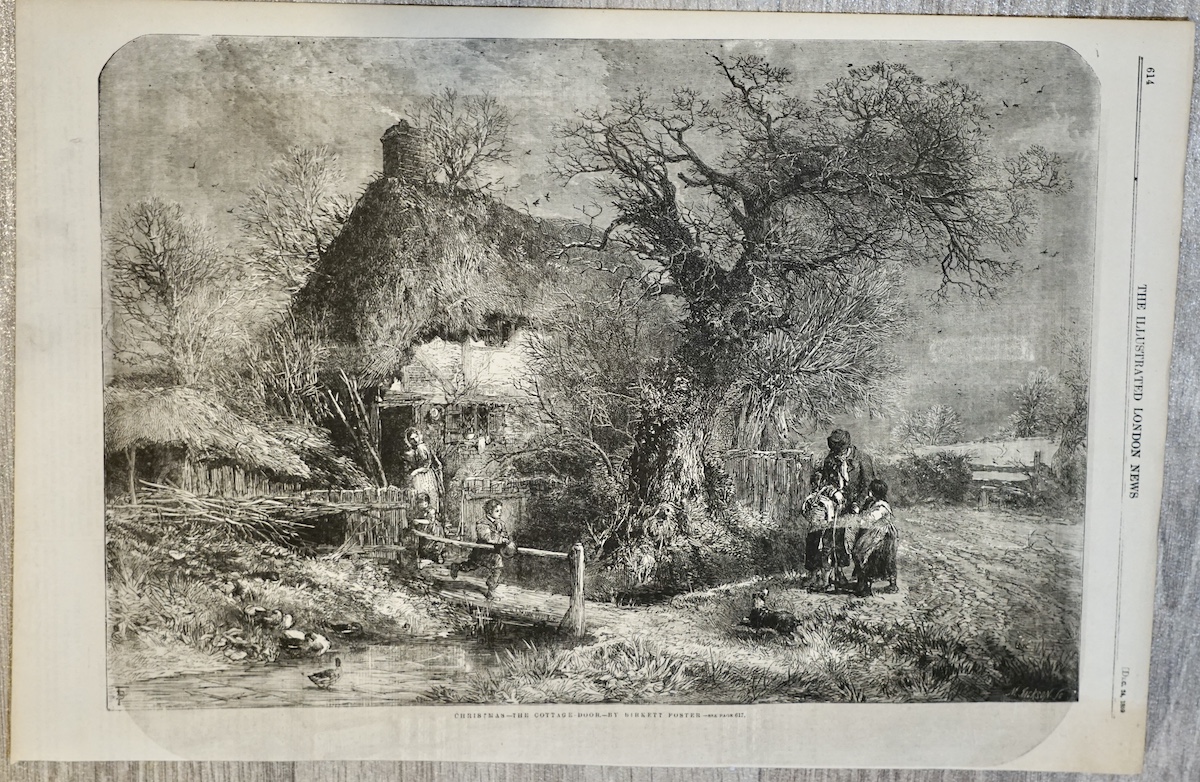 Antique Print Christmas, the Cottage Door, 1859, 40.5 x 27 cm.