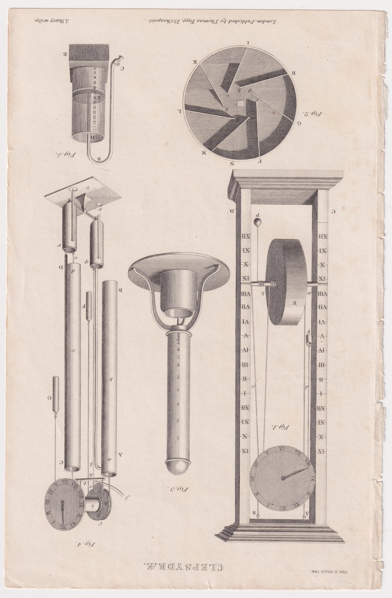 Antique Print, Clepsydrae, 1870 ca. credit Antiche Curiosità©