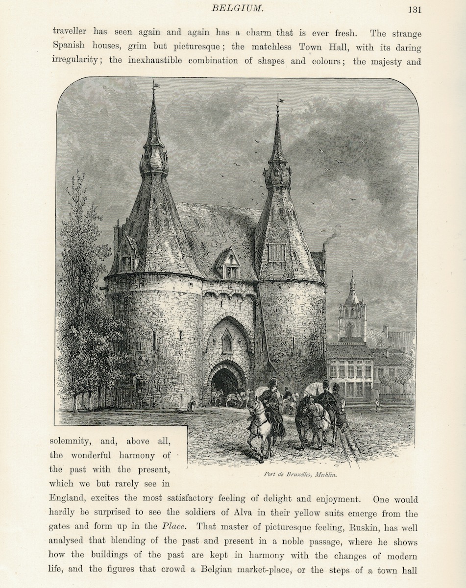 Antique Print, Cloister at Tongres: Port de Bruxelles, 1873, printed on both sides, 32 x 24 cm.