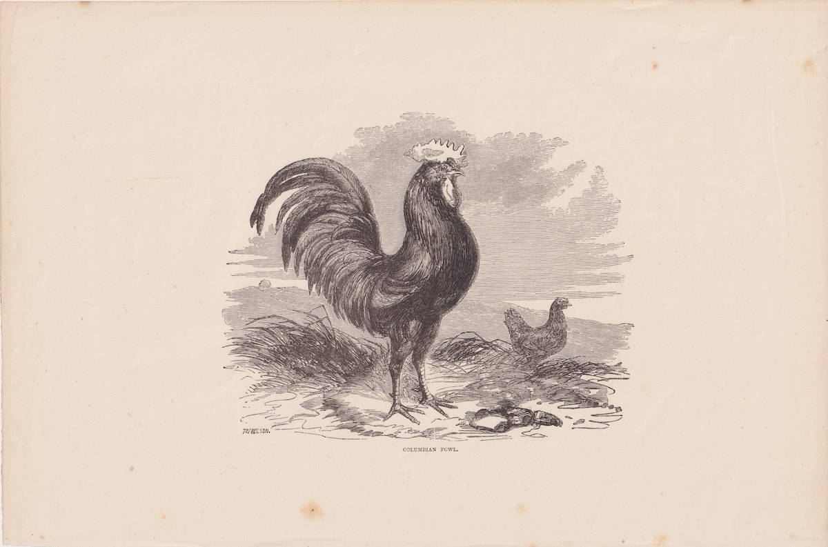Antique Print, Columbian Fowl, 1870, credit Antiche Curiosità©