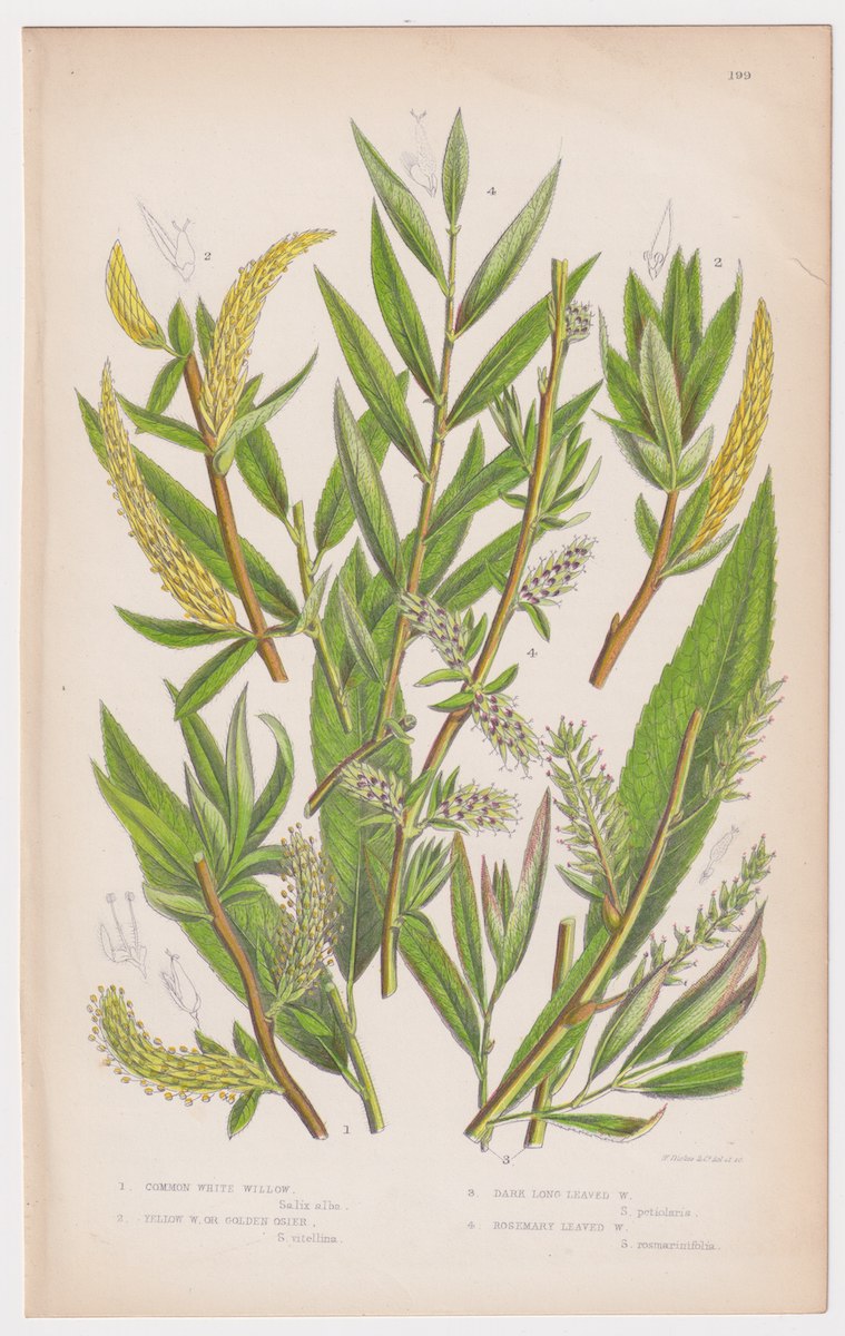 Antique Print, Common White Willow, 1860, credit Antiche Curiosità©