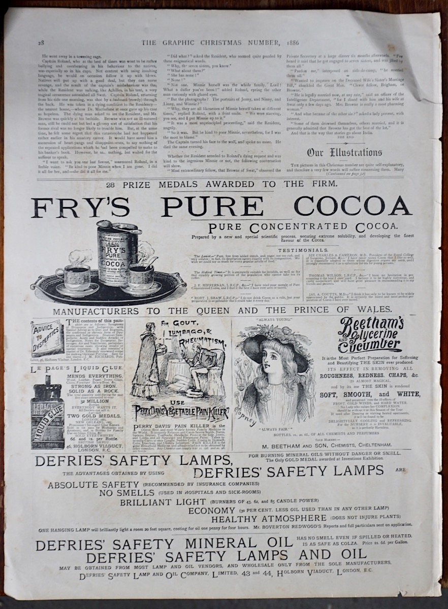 Antique Print, Confidences from the Picture by E. F. Brewtnall; Advertisements, 1886, credit Antiche Curiosità©