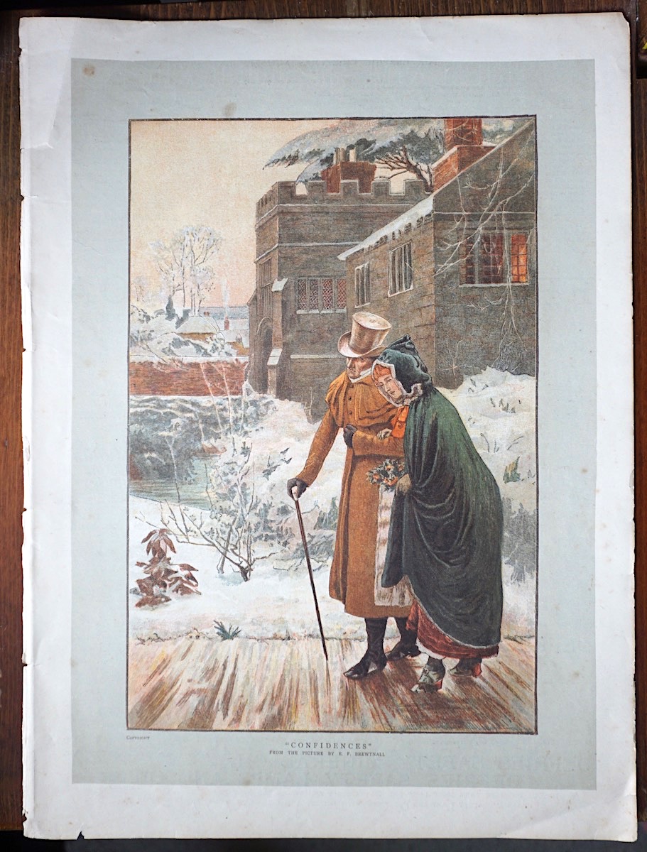 Antique Print, Confidences from the Picture by E. F. Brewtnall; Advertisements, 1886, 40,2 x 30 cm. Printed on both sides.