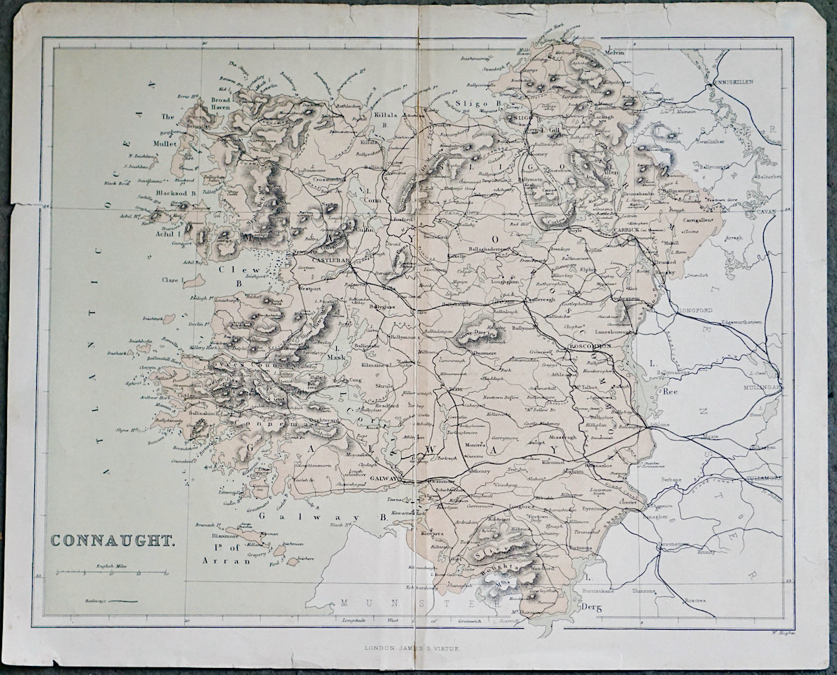 Antique print, Connaught, 1880, 33.5 x 27.5 cm.