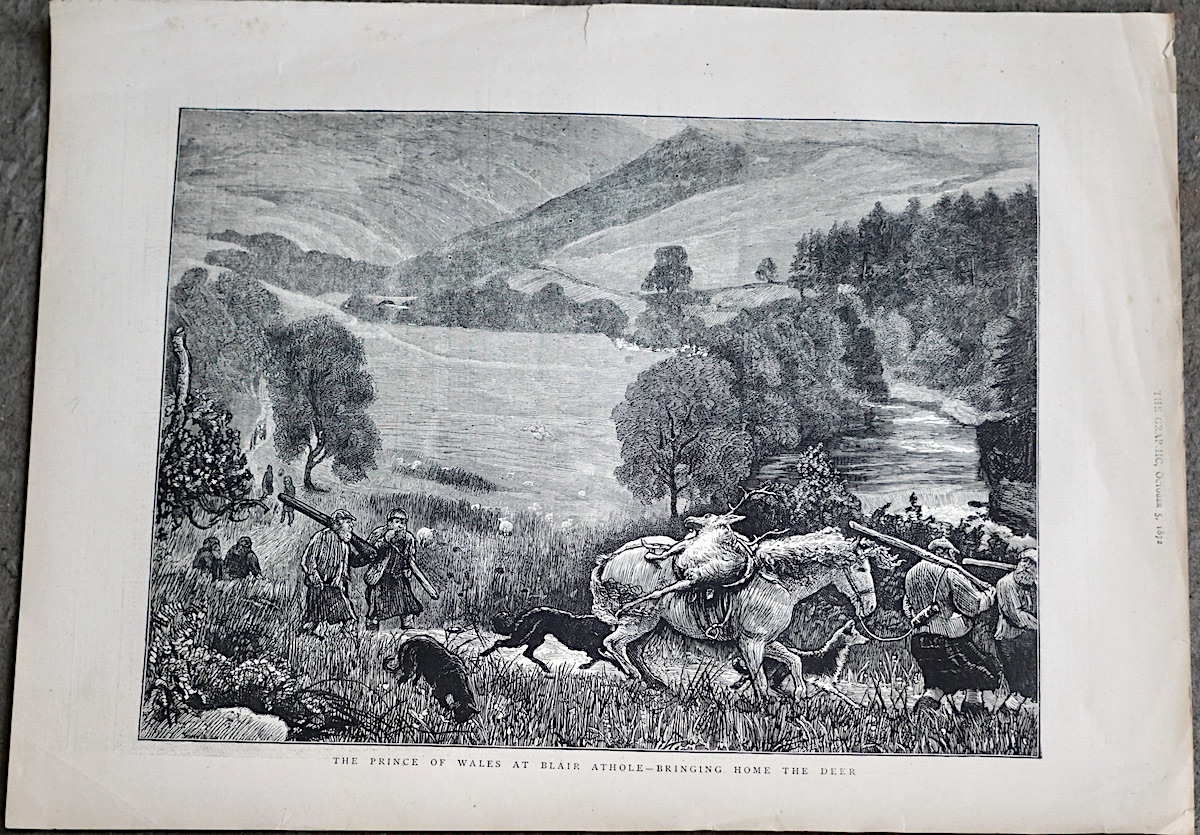 Antique Print, Deer-Stalking in the Highlands, 1873, 40.6 x 29.3 cm.