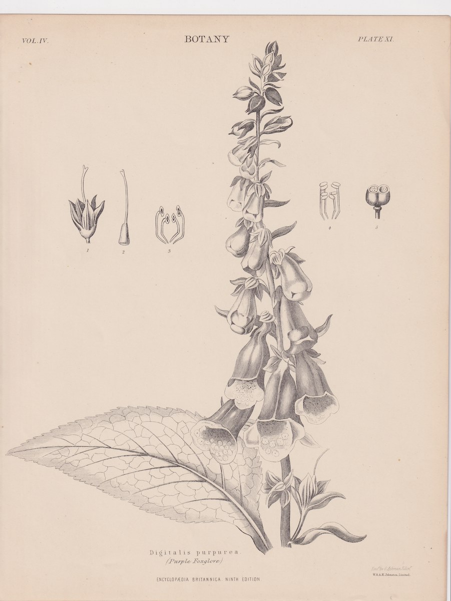Antique Print, Digitalis purpurea, 1889, credit Antiche Curiosità©