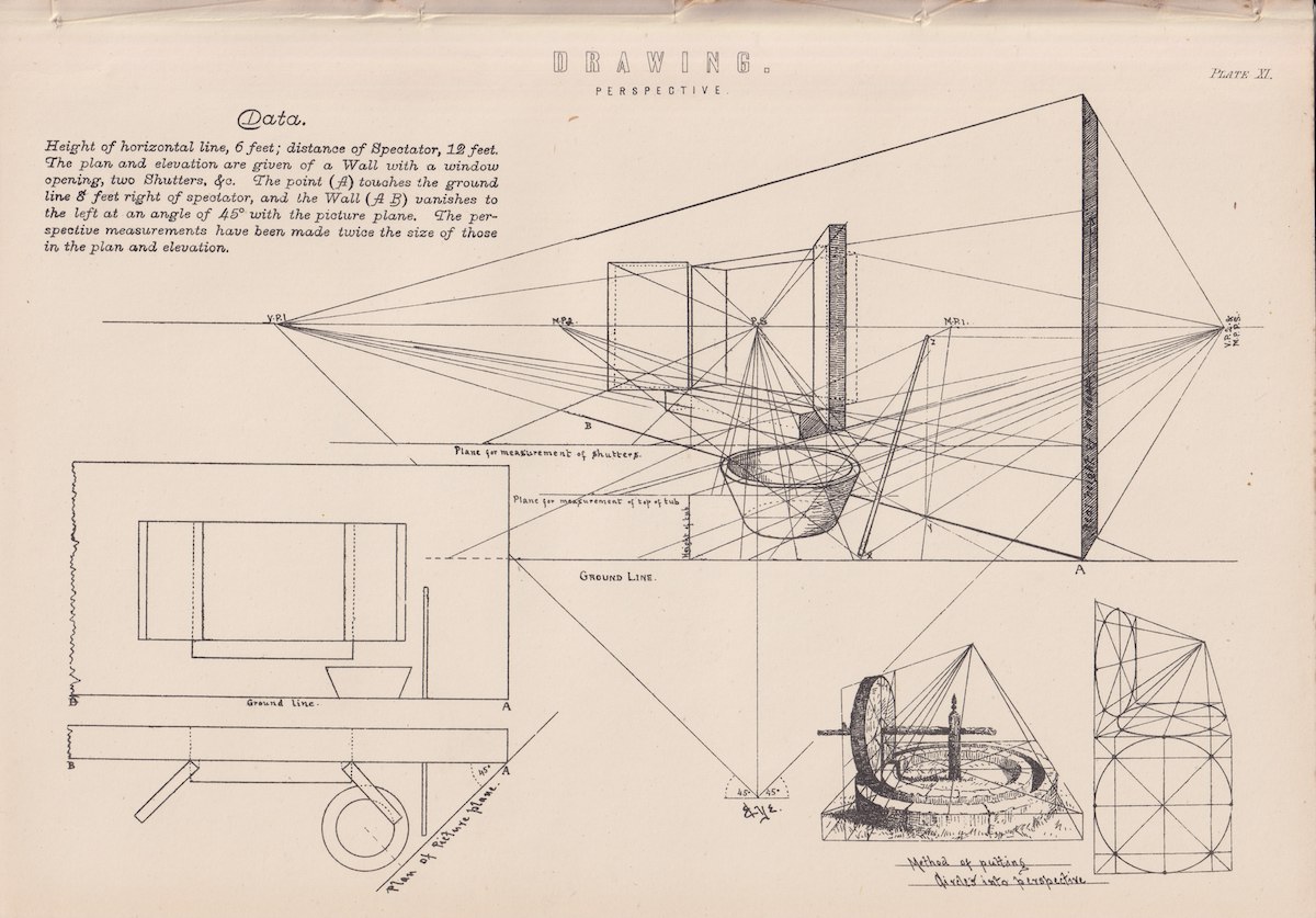 Antique Print, Drawing, Perspective, 1870