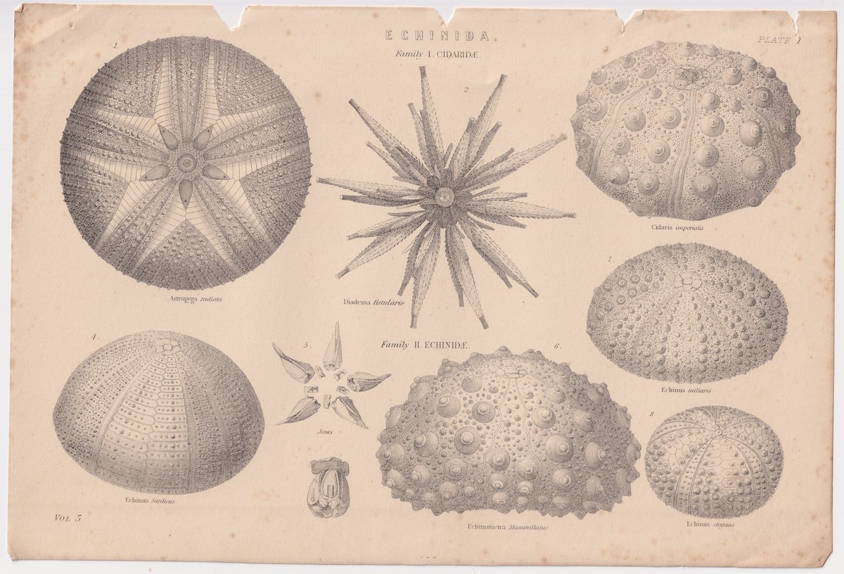 Antique Print, Echinida, 1870, 25 x 17 cm.