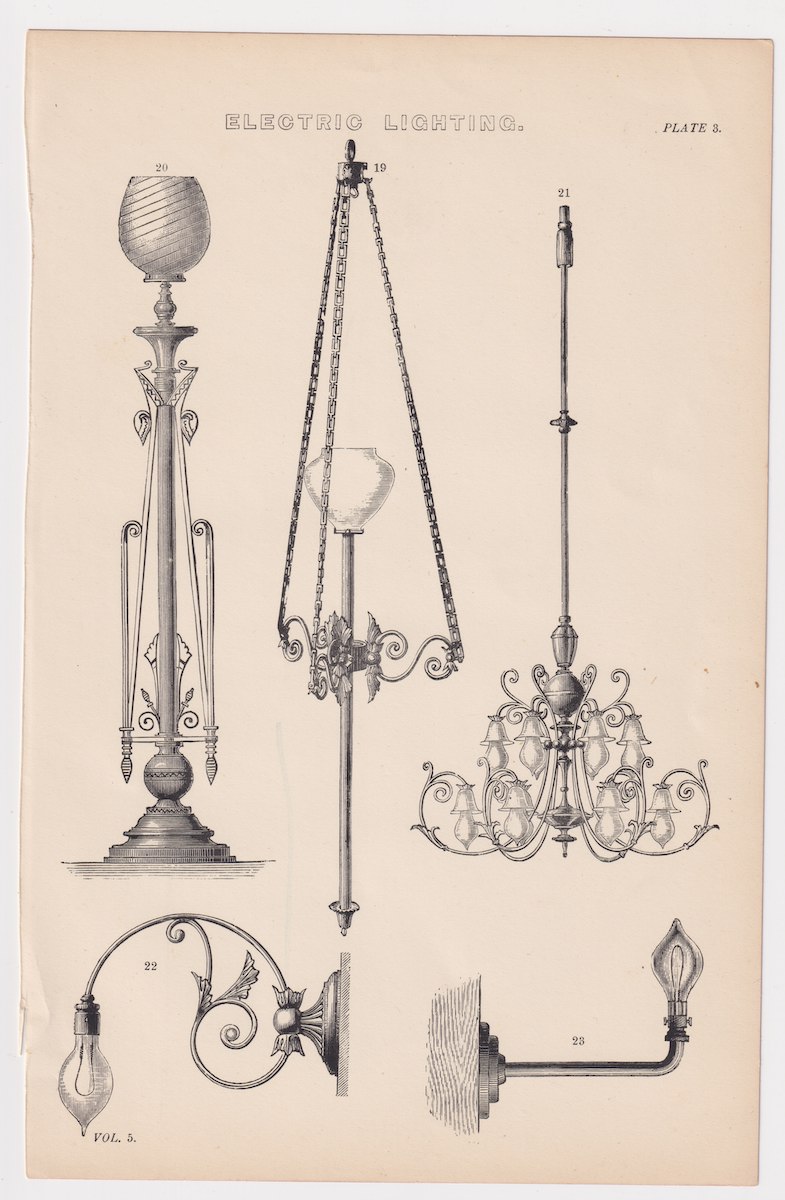 Antique Print, Electric Lighting, 1891, credit Antiche Curiosità©